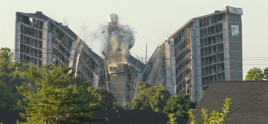 One of the most fascinating and dramatic of televised news events is the instant collapse of the dyamited skyscraper. One moment the edifice stands in all its grandiose splendor, and the next moment it is a heap of rubble hidden in billowing dust. The stark suddenness of the change excites our fasci...